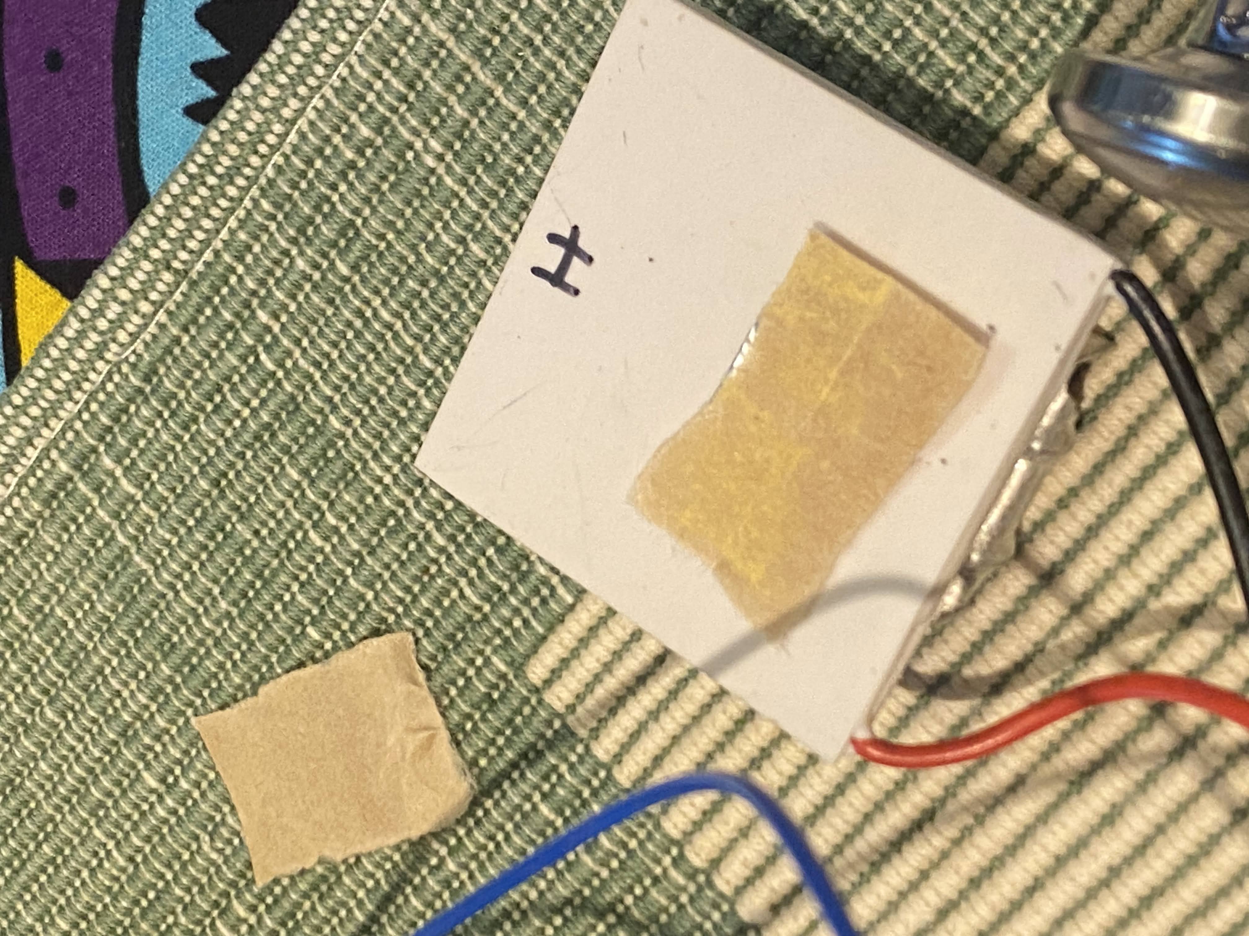 <figure><img src="https://2639459762-files.gitbook.io/~/files/v0/b/gitbook-x-prod.appspot.com/o/spaces%2FcHBegMMJJpzDTdKnVqdT%2Fuploads%2FFhVhz3Hsc7ez8NFXrkbK%2FIMG_6223.jpg?alt=media&#x26;token=59f8ed67-f724-4ee9-acad-3628d7d6446e" alt=""><figcaption><p>Peltier Module Being Tested with Thermopigment Ink</p></figcaption></figure>